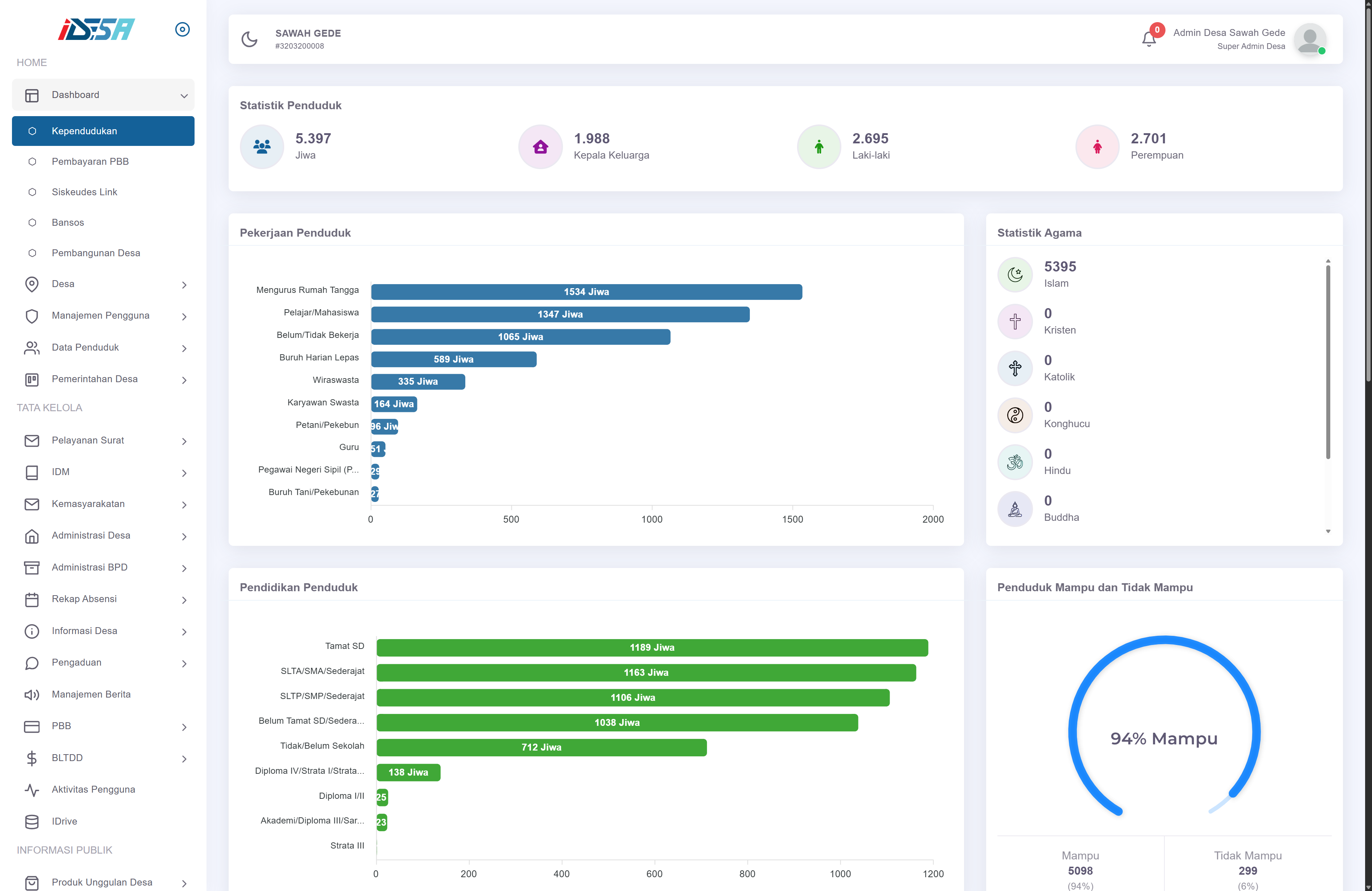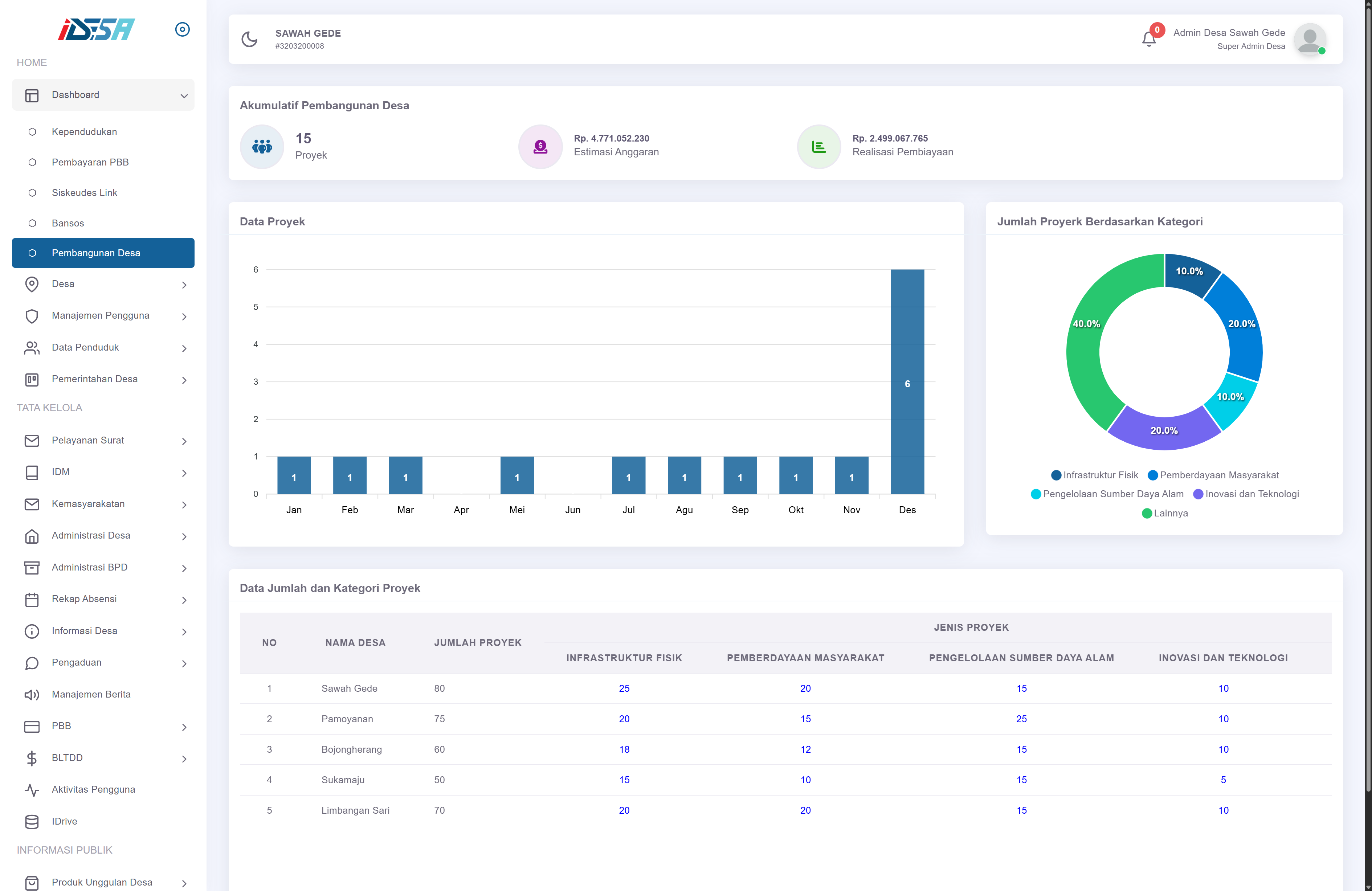 Mulai dari administrasi kependudukan, pengelolaan data, pengelolaan anggaran, pelayanan publik, hingga pengembangan ekonomi desa—dilakukan secara terintegrasi dan berbasis data, bukan lagi secara manual.
